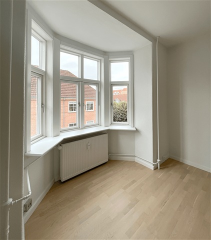 Denne 3-værelses lejlighed, der breder sig over 77 kvadratmeter, befinder sig på anden sal og byder på et særdeles godt lysindfald. Boligen har en gennemtænkt og praktisk planløsning. Fra entréen ledes man videre ind i en fordelingsgang, hvor der findes et rummeligt og lyst HTH-køkken udstyret med opvaskemaskine samt rigelige opbevaringsmuligheder. Derudover kan man finde et velindrettet badeværelse med separat bruseniche, en stor stue der er nem at møblere, samt et soveværelse med integrerede skabe og plads til en dobbeltseng.Lejlighedens placering er nærmest i tilknytning til Aalborgs centrum, idet den ligger ved indgangen til den charmerende Vestbyen. Området tilbyder blandt andet gode indkøbsmuligheder, diverse fritidsfaciliteter og nærhed til Vestre Fjordpark. Det er også kun en kort gåafstand til bymidten, hvor man kan nyde et rigt udvalg af butikker, caféer og meget andet.