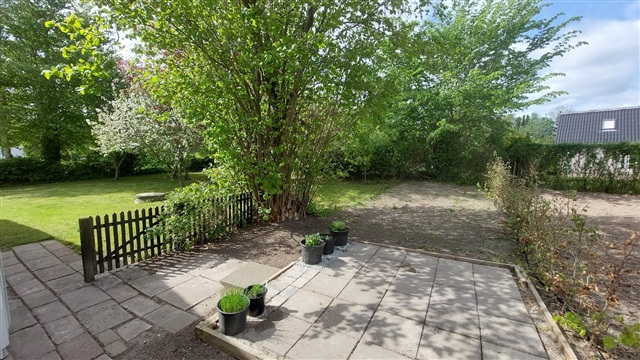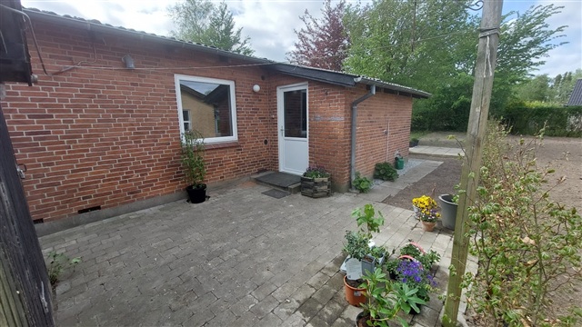 Dejlig villa med udhus/garage samt skøn have udlejes.Villaen er indrettet med baggang med god plads til vaskemaskine og tørretumbler m.v. Herfra er der adgang til et lille spisekøkken, og et af husets to soveværelser.