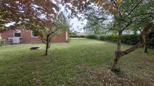 Desuden en meget stor og regulær stue, med flot afhøvlet plankegulv, stort vindue med udsigt ud over markerne og selvfølgelig et godt lysindfald. Villaen har herudover endnu et værelse, et lille pænt badeværelse med brus samt en entre/gang. Haven er godt indhegnet og er udlagt med frugttræer, græsplæne og diverse sol- og læ kroge. Opvarmes med varmepumpe.