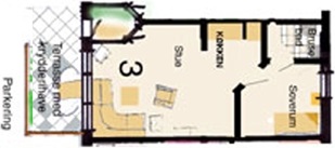 Boligen består af Stue med lille køkkenBadeværelse med bruser