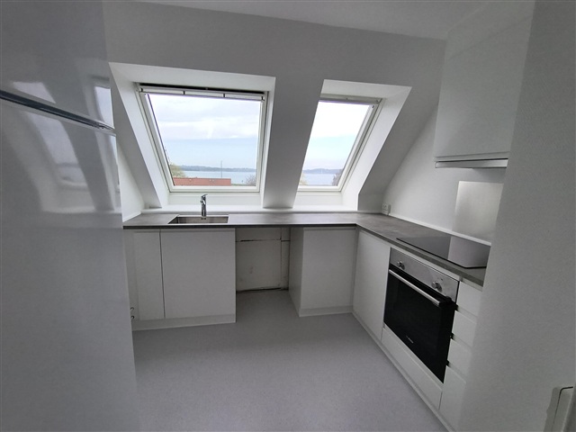 Denne velindrettede og charmerende taglejlighed med to værelser ligger centralt i Skælskør og er en del af en smukt moderniseret ejendom, som byder på gode fælles faciliteter. Boligen rummer en entré med fordelingsgang, en stue vendende mod gaden samt et soveværelse med udsigt til gården. Derudover er der et flot, nyt køkken samt et nyere badeværelse, hvor der også er plads til egen vaskemaskine.Fra køkkenet, badeværelset og soveværelset kan man nyde en fremragende udsigt over vandet. Acontoforbruget dækker varme og vand.