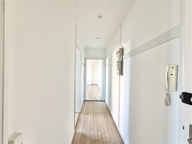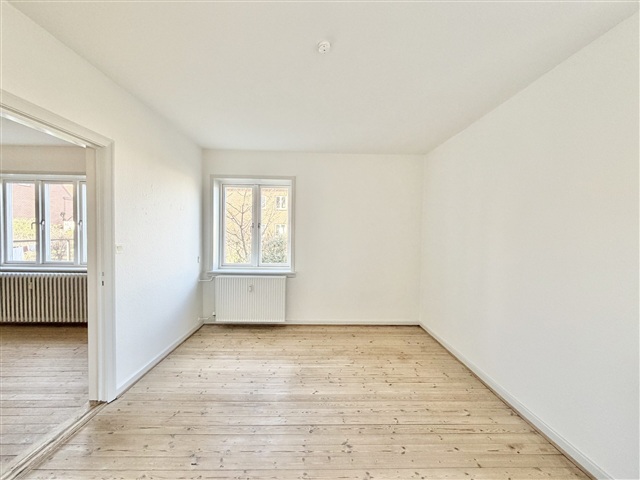 På Østerbro udbydes en velindrettet lejlighed med tre værelser, der strækker sig over 68 m² og er beliggende i den høje stueetage. Boligen rummer et køkken, som er udstyret med nødvendige hårde hvidevarer, og et badeværelse med brusebad af god størrelse. Stuen fremstår lys og indbydende, mens soveværelset har en god størrelse. Derudover findes et ekstra værelse, der kan anvendes enten som børneværelse eller som kontor.Lejligheden har afhøvlede gulve og er udstyret med dørtelefon. Ejendommen tilbyder fælles faciliteter i form af vaskeri samt en have, der deles af beboerne, placeret bag bygningen. Den månedlige husleje udgør 5.695 kr., hvortil kommer varmeudgifter på 500 kr. samt vandforbrug på 400 kr. Et depositum på 17.085 kr. skal stilles.