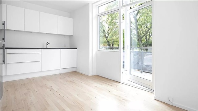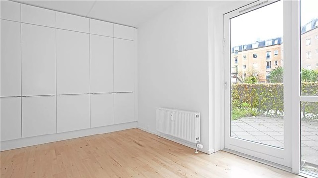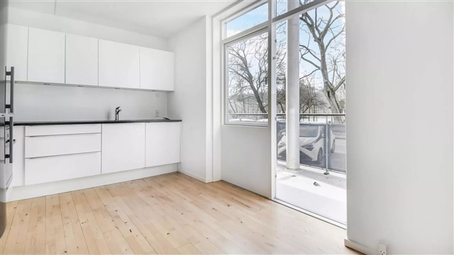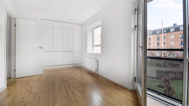 Boligen er indrettet med lyse, klassiske materialer, som skaber et tidløst udtryk. Den store mængde dagslys strømmer ind gennem vinduerne, og det robuste parketgulv understøtter det rene udtryk, suppleret af hvidmalede vægge, lofter og paneler. Den generøse stue fører videre til et praktisk køkken, der byder på righoldige skabspladser, komfur, både køle- og fryseskab, emhætte samt opvaskemaskine. Badeværelset inkluderer en separat bruseniche og en vaskesøjle. I soveværelset er der indbyggede skabe, som giver god opbevaringsplads, og til lejemålet hører desuden et depotrum på 3-4 kvadratmeter i kælderen. Det er muligt at søge om tilladelse til at holde husdyr i alle lejemål.Bemærk venligst, at billederne ikke viser netop denne lejlighed, men et andet lejemål med samme planløsning og lignende standard. Mindre forskelle i placeringen af vinduer, altaner og radiatorer kan forekomme mellem lejligheder af samme type. Udsigten kan også variere, afhængigt af om fotoet er taget fra en etage over eller under den aktuelle lejlighed. Derfor kræves det altid, at der gennemføres en fremvisning, før en lejekontrakt underskrives, så du kan være helt tryg ved dit valg. Har du interesse i boligen, opfordres du til at kontakte udlejningsteamet eller booke en fremvisning direkte via lejemålets side.