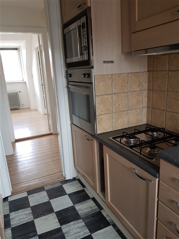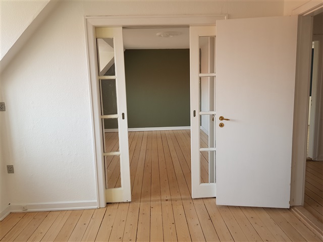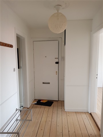 Lejligheden har central entre, to sammenhængene stuer der adskilles af franske døre (kan evt., blændes af). Fra soveværelset er der adgang til altan.Lejligheden er delevenlig
