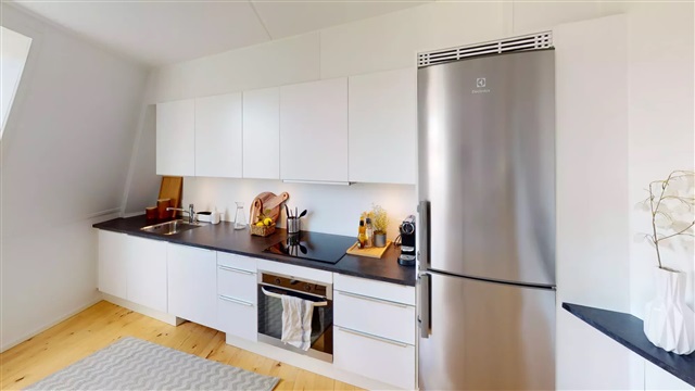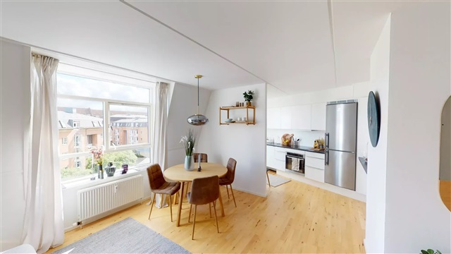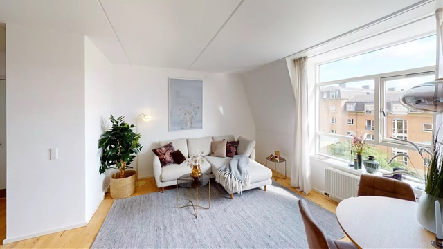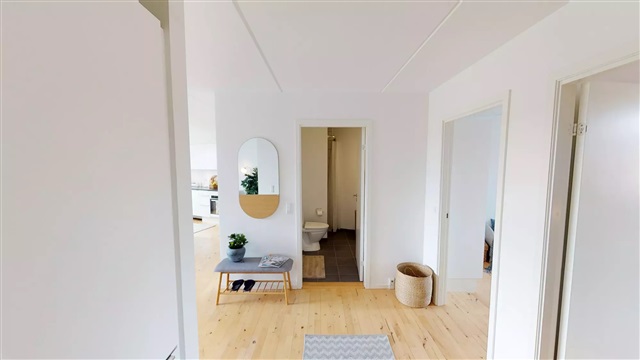 Denne lejlighed er udført i lyse, tidløse materialer og byder på et stort indfald af naturligt lys. Gulvene er belagt med solide parket, mens vægge, lofter og paneler er hvidmalede. Den rummelige opholdsstue åbner op mod et praktisk køkken, der er udstyret med rigelig skabsplads, komfur, køle- og fryseskab, emhætte samt opvaskemaskine. Badeværelset indeholder en separat bruseniche samt vaskesøjle. Soveværelset har indbyggede skabe, der giver gode opbevaringsmuligheder, og der hører desuden et depotrum på 3-4 m² til i kælderen. Mulighed for husdyrtilladelse kan ansøges i samtlige af vores lejemål.Bemærk, at billederne ikke viser den specifikke lejlighed, men er taget i en bolig med identisk planløsning og tilsvarende stand. Placeringen af vinduer, altaner og radiatorer kan variere lidt mellem boliger af samme type, ligesom udsigten kan afvige, afhængigt af hvilken etage typebilledet stammer fra. For at sikre fuld klarhed kræver vi derfor, at en fremvisning altid gennemføres, inden lejekontrakten underskrives. Kontakt venligst vores udlejningsteam, hvis denne bolig vækker interesse, eller book en fremvisning direkte via lejemålets side.
