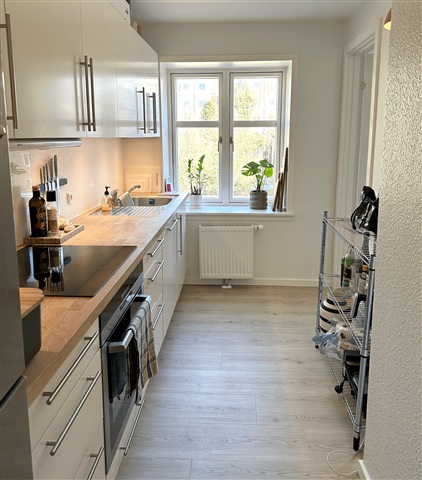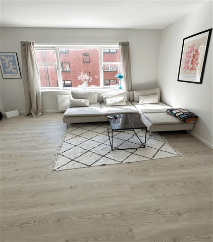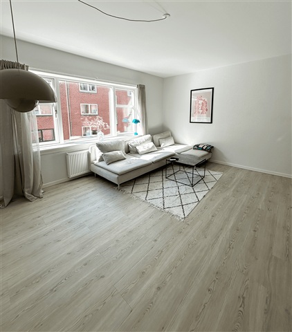 Boligens planløsning åbner op med en entré, der byder velkommen og giver mulighed for at hænge overtøj samt opbevare sæsonbetonede beklædningsgenstande. Fra entréen fører en fordelingsgang videre, som forbinder samtlige værelser i lejligheden. Soveværelset er stort og præges af et lyst miljø, der nemt kan rumme en stor seng samt byder på gode opbevaringsløsninger. Køkkenet fremstår rummeligt og er udstyret med en opvaskemaskine samt et nyere, velholdt HTH-køkken. Den tilstødende stue er ligeledes rummelig og fyldt med lys, idet de brede vinduer lader dagslyset strømme ind. Badeværelset indeholder alle nødvendige faciliteter. Samlet set udgør boligen en moderne og indbydende lejlighed med masser af lys og rummelighed.Denne lejlighed er beliggende centralt i Aalborg Vestby, et område hvor lejeboliger typisk udlejes hurtigere sammenlignet med andre dele af byen. Den attraktive bydel byder på flere faciliteter og naturskønne områder, herunder Vester Fjordpark, lystbådhavnen, Aalborg Streetfood samt flotte grønne områder tæt på.