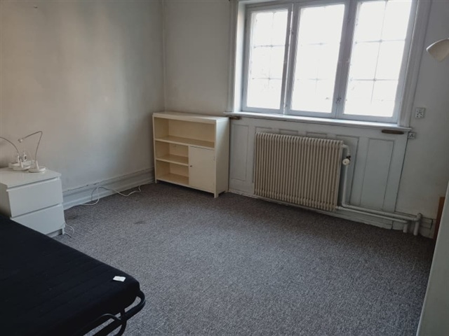 På førstesalen i en villa udlejes et rummeligt og lyst værelse, der er tilgængeligt med det samme. Værelset er udstyret med et stort indbygget tre-fløjsklædeskab, en seng, en reol samt mulighed for et skrivebord. Derudover er der et TV og et køleskab, men det kan også lejes uden møbler, hvis ønsket.Lejer har ubegrænset adgang til både køkken og badeværelse samt internetforbindelse og brug af vaskemaskine. Derudover er der adgang til villaens forhave. Rygning er ikke tilladt indenfor i boligen.