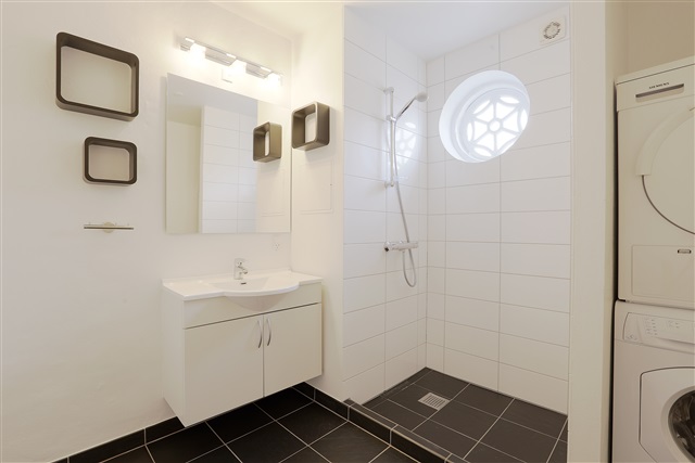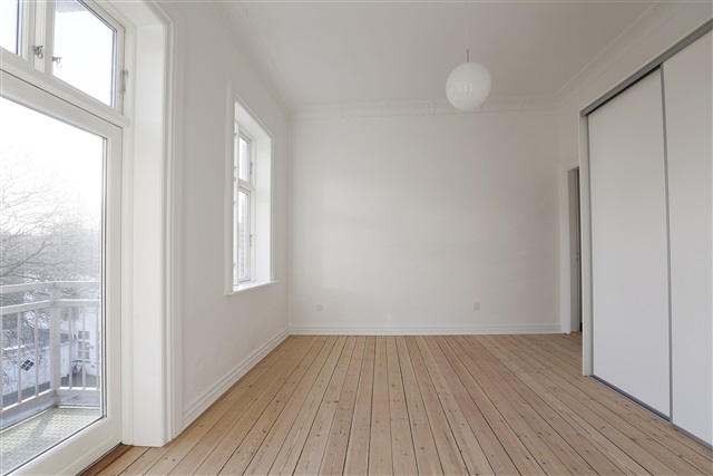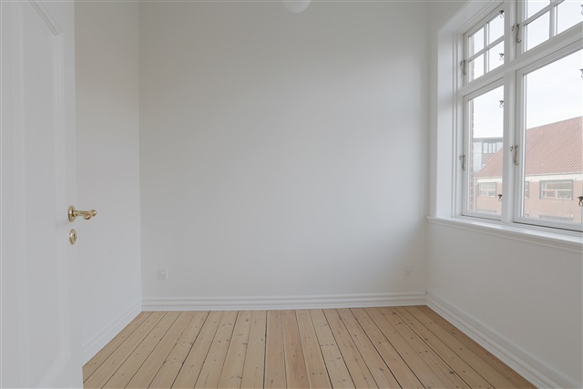 På 2. sal i den attraktive ejendom "West-End", beliggende på hjørnet af Kongensgade og Stormgade i Esbjerg, finder man denne velplanlagte og charmerende 5-værelses lejlighed. Bygningen, som regnes for en af områdets mest præsentable, rummer flere erhvervsfaciliteter i stueetagen, herunder en café, en vin- og delikatessebutik, et kunstgalleri samt en frisørsalon. Området er desuden kendt for sit brede udvalg af gode handelsmuligheder og den særlige, hyggelige stemning.Adgangen til boligen sker fra Kongensgade via en smuk trappeopgang, der er præget af lysindfald og detaljerede snedkerarbejder. Selve lejligheden byder på en entré i forbindelse med et køkken, som åbner op mod to store og lyse opholdsstuer. Fra stuerne er der adgang til en charmerende altan med kig ud over havnemiljøet. Udover dette findes der to soveværelser med smarte, indbyggede skabsarrangementer, et mindre gæsteværelse samt to badeværelser, hvoraf det ene er udstyret med en vaskesøjle bestående af både vaskemaskine og tørretumbler. Fra et af soveværelserne er der desuden adgang til en større altan, som vender ud mod ejendommens hyggelige gårdmiljø. Lejlighedens opholdsarealer har hvidmalede vægge og afhøvlede trægulve, og de fine fyldningsdøre bidrager til boligens klassiske udtryk. Køkkenet er fuldt udstyret med hårde hvidevarer, herunder en opvaskemaskine. Det skal bemærkes, at husdyr ikke er tilladt i ejendommen.