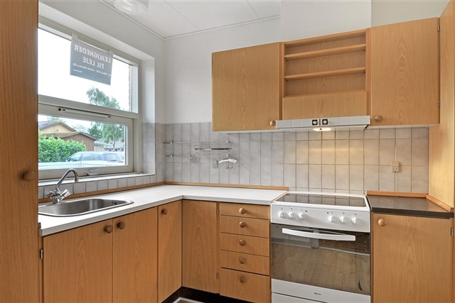 Boligerne - Hyggelige små rækkehuse De fire dobbelt-rækkehuse består af seks familieboliger med to eller tre rum, og to ungdomsboliger med ét rum. I familieboligerne har du adgang gennem et lille udhus med god opbevaringsplads eller via hoveddøren ind til entré med hattehylde og garderobestang. Bryggerset rummer plads til både vaskemaskine og kondenstørretumbler. Soveværelset har faste skabe. Det rummelige badeværelse er med ældre grå klinker, brus og toilet. Køkkenet i egefinér har komfur, emhætte og køle-fryseskab samt enten linoleums- eller parketgulv. Køkkenet ligger i åben forbindelse til stuen med fint bøgeparketgulv samt med udgang til egen terrasse og have. Ungdomsboligerne har lille køkken og badeværelse. Der er ikke gjort plads til vaskemaskine og/eller tørretumbler. Det ene rum fungerer som kombineret stue og soveværelse. Løveparkvej ligger i et dejligt grønt område ved siden af Zoo, skole, bus m.v.