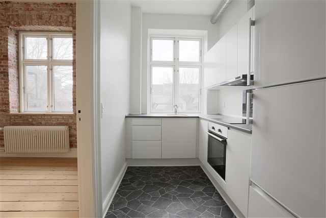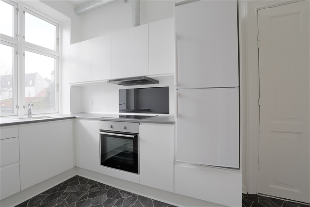Denne lejlighed er beliggende i stueetagen i den markante og velholdte ejendom, der bl.a. huser Sand's Restauration, midt i Esbjerg.Lejligheden er nyrenoveret i 2020, med bl.a. nyt Designa køkken med hvide skabslåger, indbygningsovn, induktions-kogeplade, stort køleskab m.m.Udover køkken er lejligheden disponeret med en stor, lys stue med fine trægulve, samt soveværelse med udsigt mod gårdhaven.Badeværelset har linoleumsbeklædning, og her er der monteret et vaskeskab, brusesæt m.m.Der er dørtelefon i lejligheden, adgang til vaskefaciliteter og kælderum samt skur til cykelparkering i ejendommens gård.Der er monteret nye vinduer i ejendommen indenfor de seneste år, ligesom facaderne er blevet renoveret og isoleret udefra.HUSDYR ER IKKE TILLADT I EJENDOMMEN!