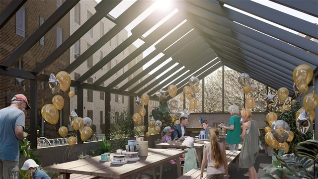 De kontrastfyldte bygninger i Lerholmen er tegnet af DesignGroup Architects, som har skabt en moderne ejendom. Ejendommen består af 7 bygninger centreret omkring et stort grønt gårdrum med masser af plads til både leg og afslapning. Her finder du både sociale rum med pavillon og bålplads, hvor du kan samle familie, venner og naboer. Du finder også private og rolige hyggekroge, hvor du kan slappe af med en bog i de grønne omgivelser. Her kommer også en boldbane, hvor man kan få sved på panden. Bygningerne i Lerholmen er opført i forskellige højder, hvilket sikrer et optimalt lysindfald samt en skøn udsigt for alle ejendommens boliger. Lerholmens største bygning er med til at danne byporten ind til Nærheden, den skønne nye bydel som bliver dit nabolag. Alle hjem i Lerholmen er skabt med mennesket i fokus og fremtidssikrerede. Alle boliger er forsynet med eget ventilationsanlæg med høj virkningsgrad, hvilket er med til at sikre et energivenligt byggeri. Gårdhaven vandes med opsamlet regnvand, og alle bygninger opføres til opfyldelse af energiklasse A2020. Bygningen er udstyret med lavtemperatur fjernvarme, som sikrer en varmeforsyning der reducerer påvirkningen på miljøet. Herudover er bygningerne i Lerholmen forsynet med solceller på tagene. Ejendommen er også udstyret med elevator og dørtelefon i alle bygninger – og til hver lejlighed tilhører et depotrum med plads til opbevaring. Uanset om du kører i delebiler eller egen bil, er der plads til at parkere nær lejligheden i det nybyggede P-hus. I gården er der desuden parkeringspladser til både cykler og ladcykler.