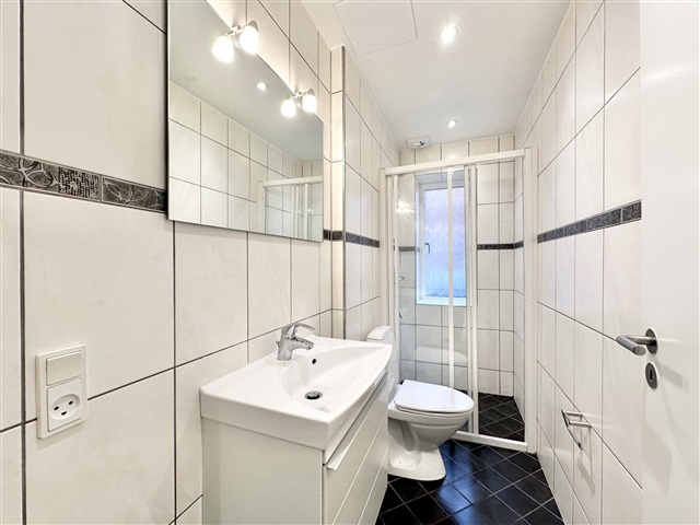 Ligeledes flot nyt flisebadeværelse med bruseniche.
