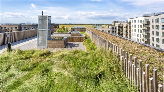 Ejendommen Fælledkanten har en bemærkelsesværdig beliggenhed som første række ud mod Kalvebod Fælled og tilbyder en fælles tagterrasse på hele 1.300 m², som er opdelt i fire niveauer med elevatoradgang til alle. Taghaven rummer tre store væksthuse med frugttræer, siddepladser og områder til fælles urban havebrug. Opført i 2019 og designet af det prisvindende arkitektfirma Danielsen Architecture, kombinerer bygningen moderne familieliv med energirigtige løsninger i et funktionelt og tidløst udtryk. Gårdmiljøet omfatter små grønne oaser og legepladser, der fremmer både leg og afslapning. Under ejendommen findes en parkeringskælder med mulighed for privat p-plads, og yderligere faciliteter omfatter cykelparkering, depotrum, elevator samt dørtelefon med kameraovervågning.