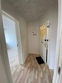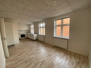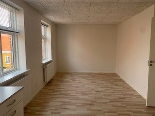 Dejlig lys lejlighed bestående af entre, soveværelse m/ stor skabsvæg, stort køkken med m/køleskab/fryser, komfur, emhætte og opvaskemaskine.Stue med flere indbyggede skabe. Badeværelse m/bruser. Adgang til kælder.