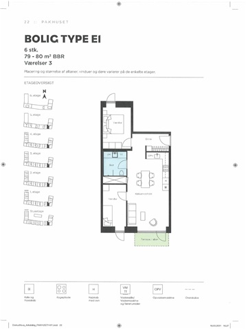 Det skal bemærkes, at billederne kun tjener som en vejledende illustration af farvesammensætning og materialevalg, da de er taget i en tilsvarende bolig i samme ejendom.