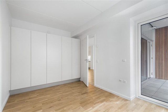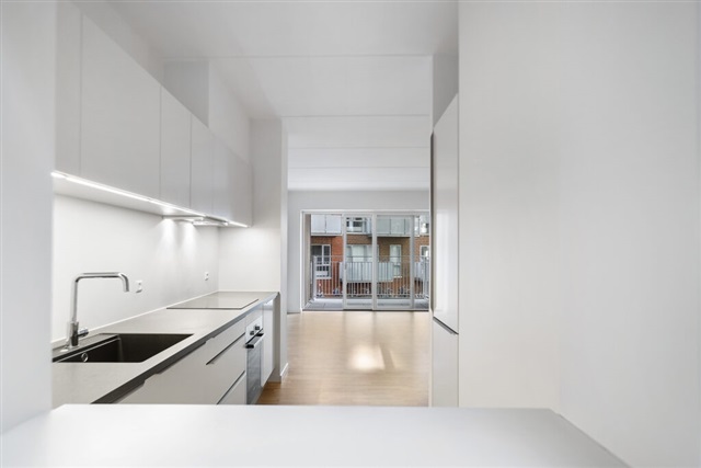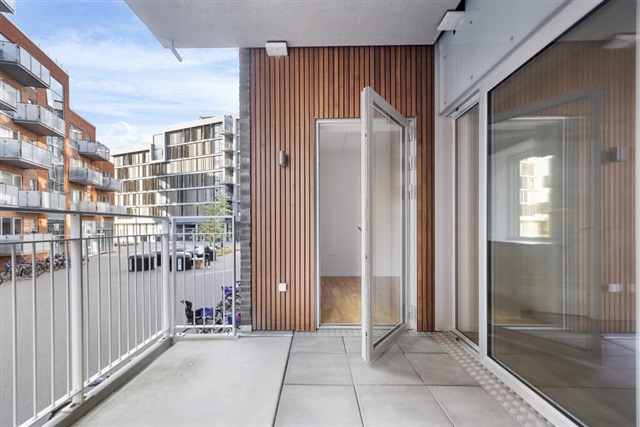 Denne spændende 3-værelses lejlighed ligger i et nyere byggeri på det eftertragtede område Godsbanearealet. Boligen rummer et kombineret køkken og stue, der tilfører en åben og indbydende atmosfære. Badeværelset er rummeligt og prydes af smukke klinker med travertin-look, hvilket tilfører et eksklusivt udtryk. Der er to værelser; et soveværelse og et yderligere værelse, begge forsynet med indbyggede skabe. Fra soveværelset og stuen er der udgang til en stor altan, der giver ekstra plads og mulighed for udeliv. Indretningen i hele lejligheden er leveret af Invita, og de lyse egetræsparketgulve går igen i samtlige rum, som også alle har gulvvarme. Lejligheden er karakteriseret ved fokus på fine detaljer i materialevalg og udførelse.Ejendommen byder på en smuk overdækket atriumgård, og i kælderen findes mulighed for at leje parkeringsplads, hvortil man kommer via en bilelevator. Der er desuden elevator i ejendommen, og en fælles stor tagterrasse giver en flot udsigt over byen Aalborg. Det skal bemærkes, at billederne af altanen stammer fra en tilsvarende lejlighed og ikke fra denne.