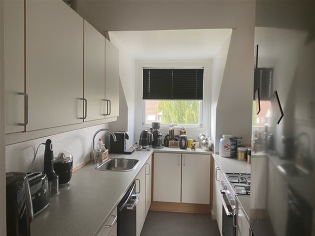 The apartment is bright and well-kept, with a small balcony and a shared living room and kitchen. It’s located only 800 meters from Glostrup Station, with a direct train to Copenhagen Central Station in 16 - 17 minutes. Grocery stores are within a 5–8 minute walk, and Glostrup Center is close by. Laundry facilities are available in the basement.