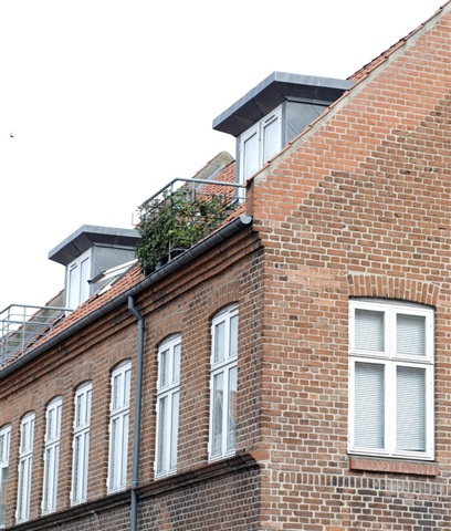 Etagebyggeri med 6 boliger i 3 etager. Der er ikke elevator. Der er altan til de 2 taglejligheder. Fælles cykelkælder med depotrum. Mulighed for at installere sin egen vaskemaskine.