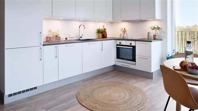 Fotosne, som vises, stammer ikke fra den aktuelle lejlighed, men fra en prøvelejlighed, og de skal ses som eksempler på materialevalg og stil. For planløsningen henvises til den medfølgende plantegning. Ønsker du yderligere information eller en fremvisning, er vores udlejningsteam klar til at hjælpe, eller du kan booke en tid direkte på annoncen.
