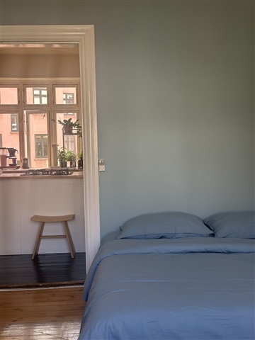 Der udlejes et lyst og møbleret værelse på cirka 14 m² til en pendlende person, der søger et fast sted at bo i København i hverdagene, primært fra mandag til torsdag. Boligen er beliggende ud til Liva Weels Plads, kun 200 meter fra Enghave Plads Metro, og området er præget af ro med nærhed til caféer, byliv og grønne områder.Rummet er udstyret med en seng, hvor dyner, puder, sengetøj samt håndklæder medfølger, desuden er der et skrivebord og et klædeskab. Lejer har en fast plads til personlige ejendele, selv når værelset ikke benyttes. Hver mandag sørges der for opredning, og værelset modtager masser af naturligt dagslys. Det står til rådighed fra søndag aften til torsdag aften, da det anvendes som kontor i weekenderne.
