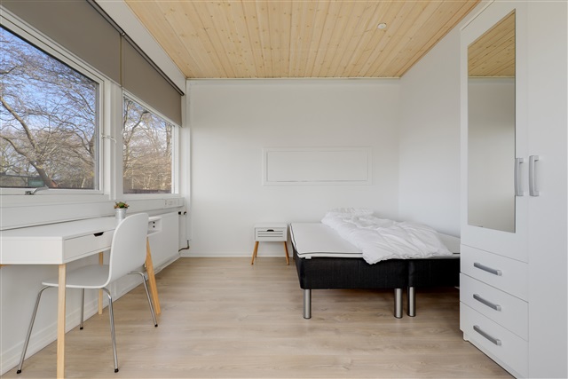 ERHVERVDenne bolig ligger i nærheden af havnen og er ideel for op til tre medarbejdere. Værelset er møbleret af høj kvalitet og indeholder blandt andet seng, skabe og skrivebord. Der er adgang til en fælles stue med alrumsfunktion samt et charmerende badeværelse udstyret med bruser. Lejemålet fremstår fuldstændigt nyistandsat.