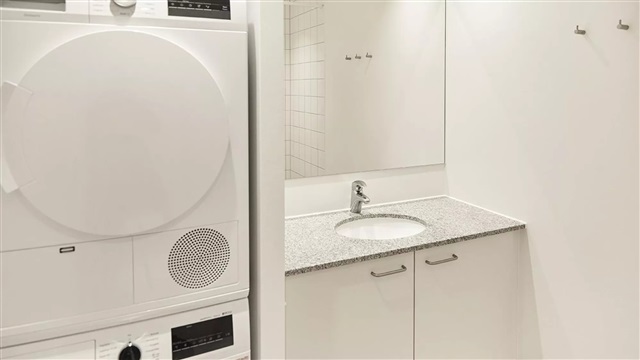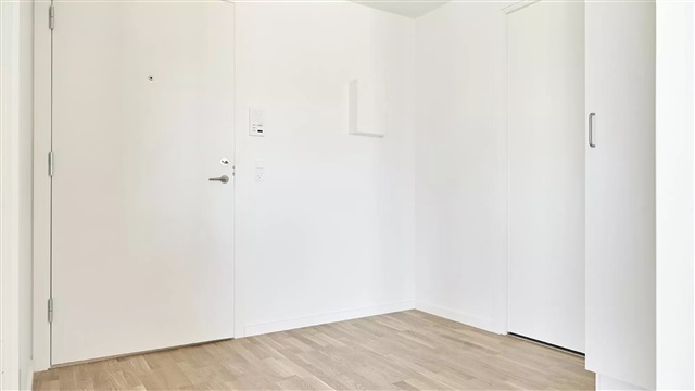 Lejlighedens centrale rum samler køkken, spiseplads og stue i ét åbent og sammenhængende areal. Bygningen er opført med tidssvarende og tidløse materialer, og de store vinduespartier sikrer en rig mængde naturligt lys. Køkkenet, der er leveret af Invita, fremstår lyst og er udstyret med indbyggede hårde hvidevarer fra Siemens. Badeværelset er praktisk indrettet med gulvvarme, indbyggede spots, en separat bruseniche samt en vaskesøjle. Soveværelset indeholder faste skabe, der giver god opbevaringsplads. I samtlige lejemål er det muligt at søge om tilladelse til at have husdyr. Bemærk venligst, at grundet manglende mål på plantegningen, skal du selv medbringe opmålingsudstyr, hvis du ønsker at tage mål under fremvisningen.De viste billeder er ikke fra den konkrete lejlighed, men illustrerer en bolig med tilsvarende stil og standard. Der kan derfor optræde forskelle i placeringen af vinduer, altaner eller terrasser samt radiatorer mellem de enkelte enheder. Udsigten kan ligeledes variere afhængigt af lejlighedens etage, hvis fotoeksemplet er taget fra et højere eller lavere niveau. Af denne grund kræves det, at du deltager i en fremvisning, før en lejekontrakt kan underskrives, så du er fuldt informeret om, hvilken bolig du får. Skulle du have interesse i lejemålet, kan du kontakte vores udlejningsteam eller direkte booke en fremvisning.