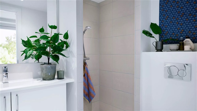 Bemærk, at de viste billeder ikke forestiller den aktuelle lejlighed, men stammer fra en prøvebolig og har til formål at illustrere stil og materialevalg. For plantegningens udformning henvises der til den vedlagte plan. Hvis du ønsker yderligere information eller en fremvisning, kan du kontakte udlejningsteamet eller booke en tid direkte på lejemålet.