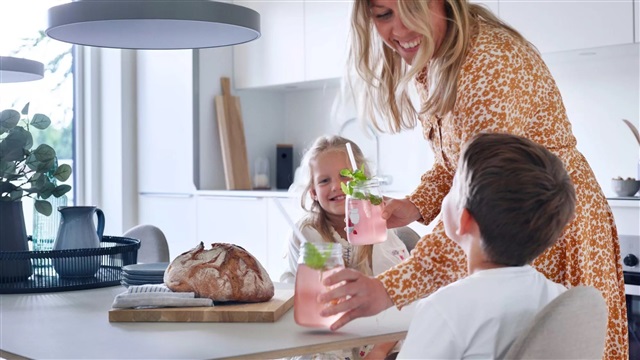 Boligens midtpunkt er det rummelige alrum, hvor familiens medlemmer kan beskæftige sig med forskellige aktiviteter, samtidig med at nærheden bevares. Under sommerperioden kan terrassedørene åbnes op, så man let bevæger sig udendørs, og når vinteren indtræffer, bevares kontakten til naturen gennem de store vinduer fra gulv til loft.