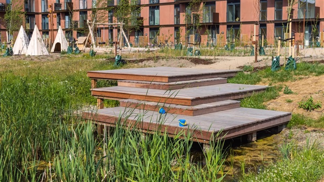 Green Hills-ejendommen er et arkitektonisk ambitiøst projekt designet af de anerkendte Danielsen Architecture, opkaldt efter de karakteristiske bakkeformer. Mellem bakkerne breder et cirka fire hektar stort fælles gårdrum sig med blandt andet en lille sø, kuperet terræn og en svævebane. Området indeholder adskillige små områder, der både indbyder til leg og afslapning for alle aldre. Byggeriet indeholder en række gennemtænkte detaljer, såsom tagdække af sedumgræs, som understøtter biodiversitet og sikrer klimasikring gennem effektiv regnvandshåndtering samtidig med, at det skaber et grønt helhedsindtryk.