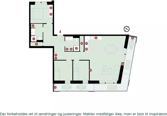 Bemærk, at de viste billeder stammer fra en prøvebolig og derfor ikke gengiver den konkrete lejlighed. Formålet med billederne er at illustrere stil og materialevalg. For oplysninger om planløsningen henvises til den vedlagte plantegning. Hvis lejligheden er interessant, er det muligt at kontakte udlejningsteamet eller booke en fremvisning direkte.