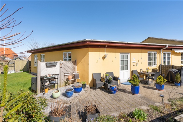 Ende rækkehus med en meget attraktiv beliggenhed i stille og rolige omgivelser.Boligen er beliggende i enden af byggeriet, hvilket giver en helt unik og privat oplevelse. Her er der brugsret til egen have, du vælger derfor selv om du vil dyrke krydderurter, nyde solen eller lave andre kreative løsninger.