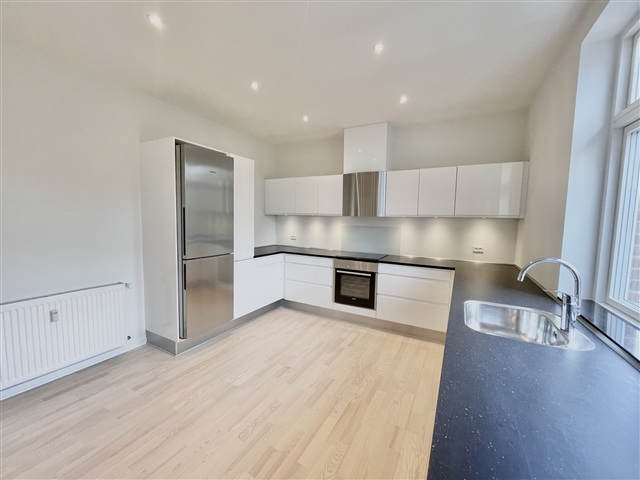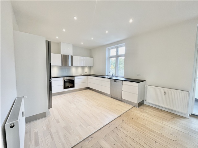 I den flotte bygning Borgerhus på Skibhusvej i Odense C udbydes nu en attraktiv 3-værelses lejlighed på 104 m² til leje, som er placeret i stueetagen.Lejligheden byder på en rummelig entré med integrerede spots i loftet. Badeværelset er stort, elegant flisebeklædt og indeholder sin egen vaskemaskine. Det veludstyrede køkken-alrum er udstyret med alle nødvendige hårde hvidevarer i rustfrit stål, herunder opvaskemaskine, og tilbyder gode skabsmuligheder samt indbyggede loftspots.