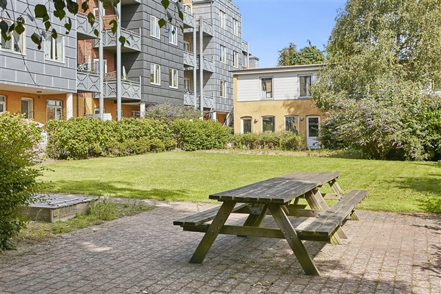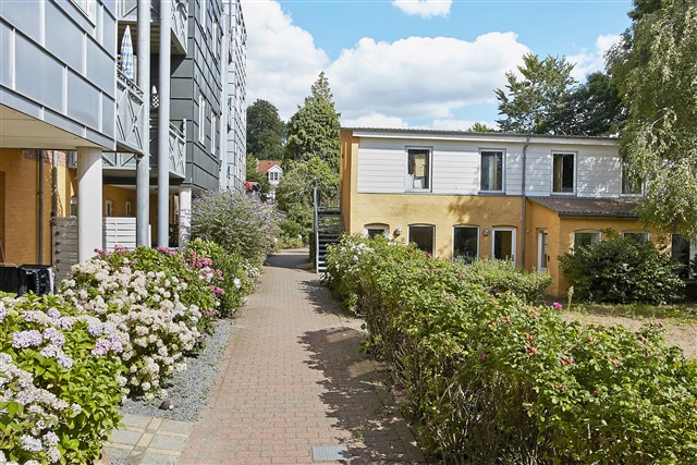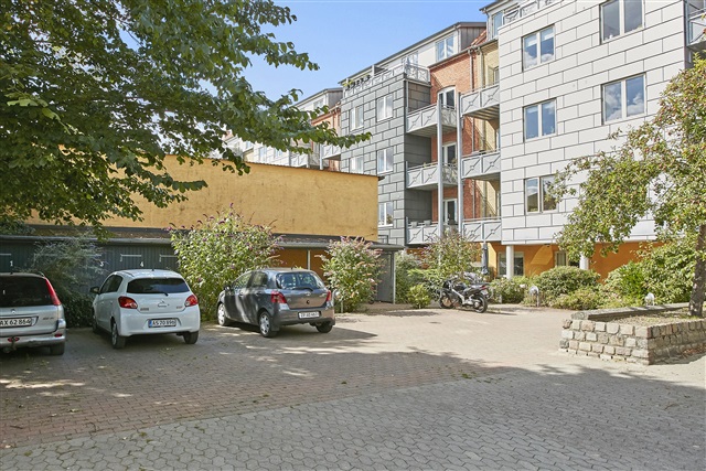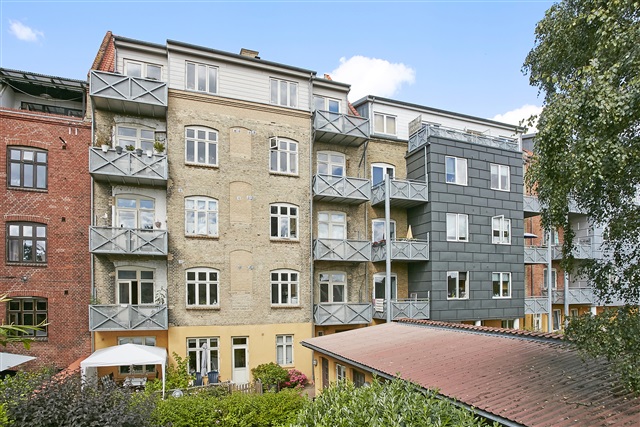 Lejligheden er gennemgribende moderniseret med fokus på energibesparelse, herunder et køkken/alrum og badeværelse med gulvvarme samt udskiftning af vinduer til 3-lags lavenergiruder. Der er installeret dørtelefon, og boligen har en stor altan med sydvendt orientering. Til ejendommen hører et omfattende haveområde, som er fælles for beboerne.Ejendommen, der er smukt beliggende i et ældre kvarter med karakter og charme, er løbende blevet opdateret. Der er kun ti minutters gang til centrum og gågaden. Lejligheden har adgang til et depotrum, og fælles faciliteter inkluderer et vaskehus. Derudover er nærheden til Lunden - et stort grønt område - en fordel.