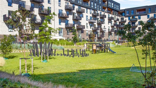 Ejendommen Øresund Park består af fem separate bygninger, der er forbundne gennem åbne, grønne gårdrum, som gør det muligt at bevæge sig ubesværet mellem bygningerne. Disse gårdrum fungerer som solrige, rekreative områder, velegnede til både socialt samvær, leg og rolige stunder. Opført i 2018 og tegnet af Henning Larsen Architects, er byggeriet opført i mursten, hvor varierende facadeelementer og farveskift skaber et visuelt dynamisk udtryk. Der er lagt vægt på bæredygtighed og energieffektivitet, blandt andet med solcelleanlæg på tagene, og samtlige boliger opfylder energimærke A2020. Under ejendommen er der en parkeringskælder med mulighed for leje af private parkeringspladser. Derudover tilbyder bygningen elevator, affaldsskakt samt dørtelefon med kamera.