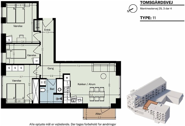 Lejlighederne på Tomsgårdsvej er udstyret med vinduer, der effektivt reducerer støjgener. Køkken og badeværelser prydes af hvide JKE-elementer med integrerede greb, mens badeværelserne er beklædt med store, elegante fliser i farven stone brown. I brusenicherne er der indbygget murede hylder med tilhørende belysning. Samtlige boliger har gulvvarme og plankegulve, og de leveres med en komplet pakke af hvidevarer, inklusive en vaskesøjle. Derudover har lejlighederne adgang til depotrum placeret på loftet.De lejligheder, som ligger i stueplan, har direkte adgang til private terrasser, der er hævet i forhold til det omkringliggende terræn. Disse private udearealer komplementeres af et lukket og indbydende fællesområde, som byder på frodig beplantning, sandkasser samt et væksthus. De øverste etager på Tomsgårdsvej kan desuden tilbyde en betagende udsigt over hele bydelen under en åben himmel.
