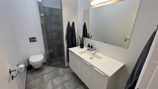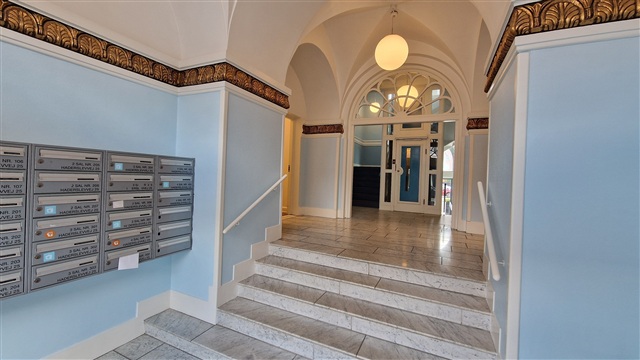 Lejligheden i THE WHITE HOUSE, som er velegnet til delebrug, ligger kun 100 meter fra gågadens centrum. Boligen rummer et stue- og køkkenområde i åben forbindelse, to soveværelser samt to badeværelser. Derudover medfølger et privat depotrum placeret i den opvarmede kælder. Installationen af ventilationsanlæg og dørtelefon med kamera er allerede på plads. Køkkenet er udstyret med HTH-inventar, et køle-fryseskab, induktionskogeplade, pyrolyseovn, opvaskemaskine i rustfrit stål samt forberedt til vaskesøjle med både vaskemaskine og tørretumbler.Der er mulighed for tilladelse til husdyrhold i boligen. På ejendommens matrikel er der opsat Clever-el-ladestandere med 11 kW kapacitet.