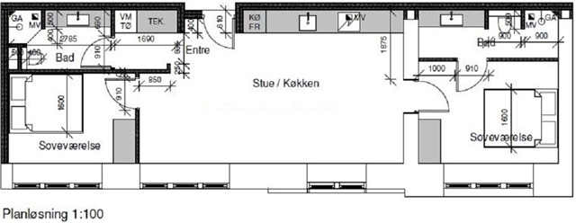 3 værelses lejlighed på 87 m2