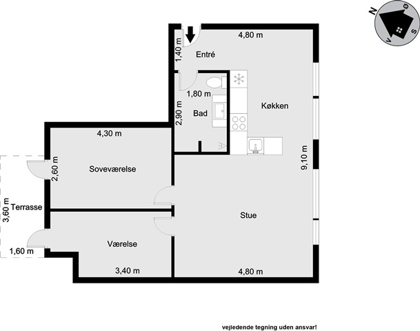 2 lyse værelser begge med udgang til altan. Lejligheden har et stort badeværelse med gulvvarme.