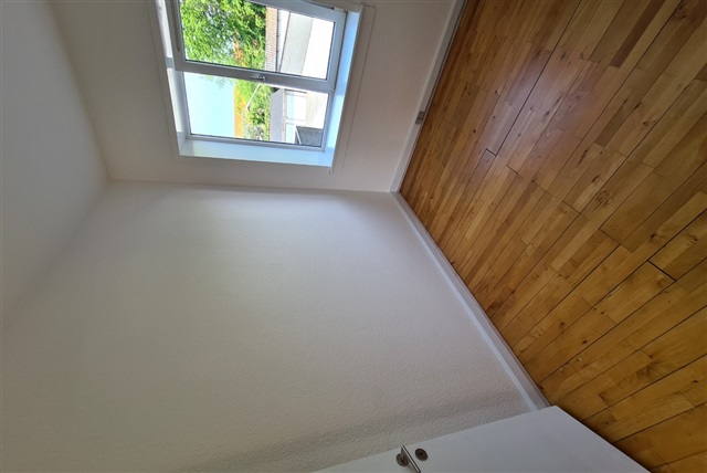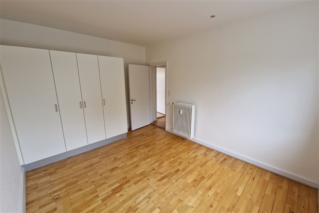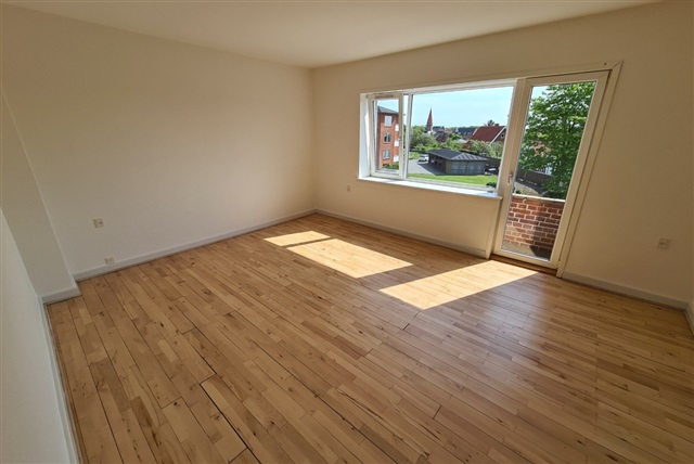 Flot lys lejlighed med lakerede trægulve og køkken med hvid/bøg køkkeninventar. Nyere bad med hvide fliser.2 altaner.