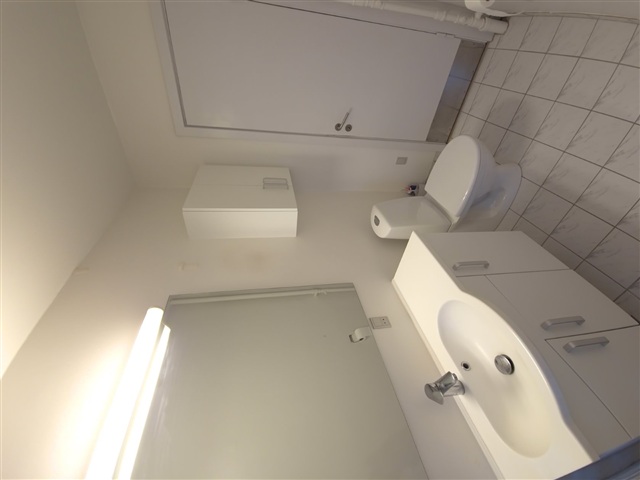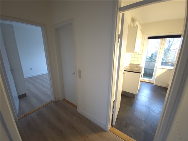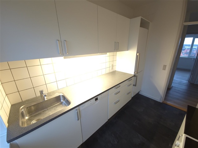 Boligen er præget af et lyst og indbydende miljø, hvor der gennemgående er lagt slidstærkt laminatgulv i askemønster. Køkkenet er holdt i hvidt og indeholder både et stort køle-/fryseskab samt opvaskemaskine, samtidig med at der er udgang til en altan. Badeværelset er beklædt med hvide fliser, og soveværelset byder på rigelig plads til garderobe. Den rummelige og lyse stue har desuden adgang til en mindre altan. I kælderen findes et fælles vaskeri til beboernes brug. Det er ikke tilladt at holde husdyr i lejligheden.