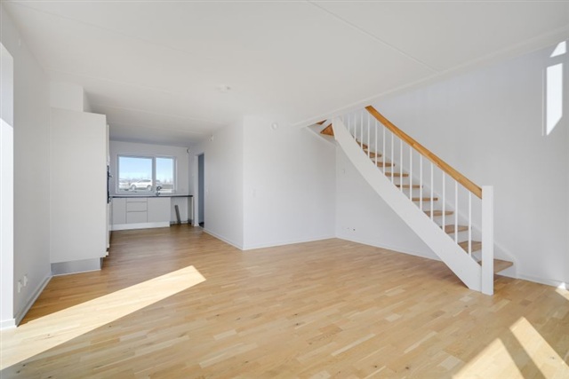 Gulvene er udført med træparket i opholdsrum og klinker i bad og forgang. Der er gulvvarme i alle rum.