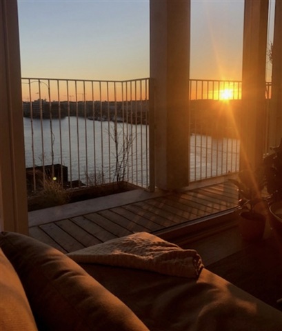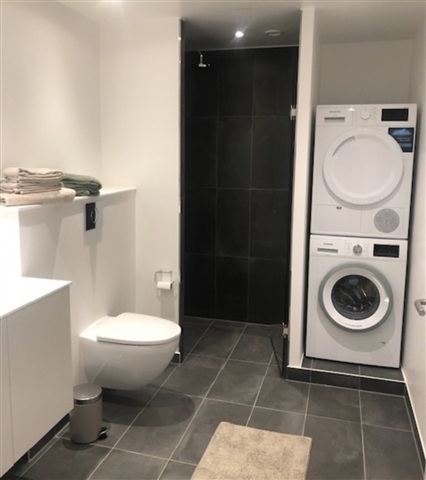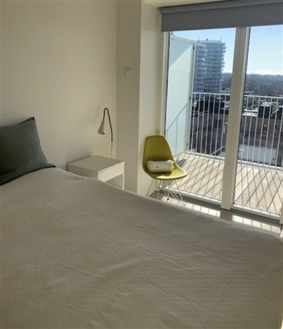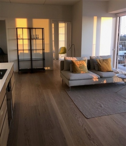 Lejligheden er fuldt møbleret og byder på en 15 m² stor terrasse med udsigt over vandet. Den er beliggende på syvende etage i en bygning med elevator. Boligen indeholder en stue i åben forbindelse med et elegant snedkerkøkken, et soveværelse samt et rummeligt badeværelse, der er udstyret med en vaskesøjle.Der hører et depotrum til lejemålet, som findes i kælderen.