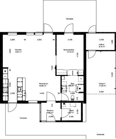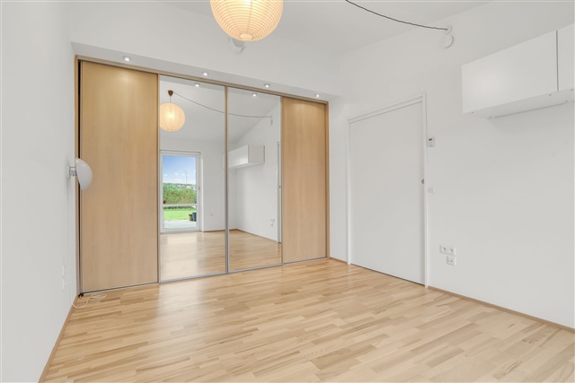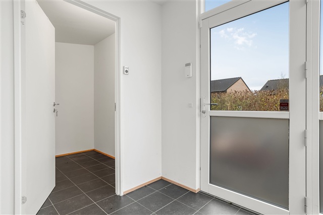 Dette etplans rækkehus er placeret i et fredeligt område inden for et nyere boligkvarter. Boligen byder på en rummelig entré, et stort køkken/alrum, der er åbent for stuen, hvorfra der er adgang til både et soveværelse, et ekstra værelse samt et badeværelse. Fra stuen er der udgang til en dejlig terrasse, som grænser op til en mindre have med sol hele dagen.Som en del af boligen hører en carport samt et mindre udhus, der egner sig til opbevaringsformål.