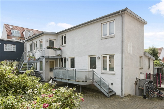 Denne charmerende lejlighed med to værelser ligger i stueetagen og byder på et køkken med alrum, hvor gulvet er belagt med laminat. Boligen har en stor terrasse mod syd samt et indbydende haveanlæg til fælles benyttelse.Ejendommen, som lejligheden er en del af, er løbende blevet moderniseret og vedligeholdt. Beliggenheden er bekvem, idet der kun er en kort gåtur på 10 minutter til både centrum og gågaden, samtidig med at havnen findes i nærheden.