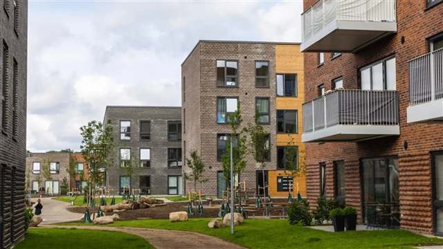 Ejendommen indgår i TriumphByen, et nyt og gennemtænkt nabolag, som er under udvikling på den tidligere Triumph-grund i Espergærde. Området er præget af grønne arealer, der løber mellem bygningerne og skaber plads til både leg, afslapning og socialt samvær. TriumfByen er designet af de prisbelønnede ERIK arkitekter med fokus på at skabe hjem, der imødekommer moderne livsstil. Visionen er et boligkvarter, der kombinerer spændende landskabelige løsninger med en skandinavisk byggestil, hvor bygningernes udtryk harmonerer med deres naturlige omgivelser. Særligt bemærkelsesværdige er de dekorative elementer, såsom farvespillet i de rødbrune teglsten og blåregn, der pryder udvalgte gavle.