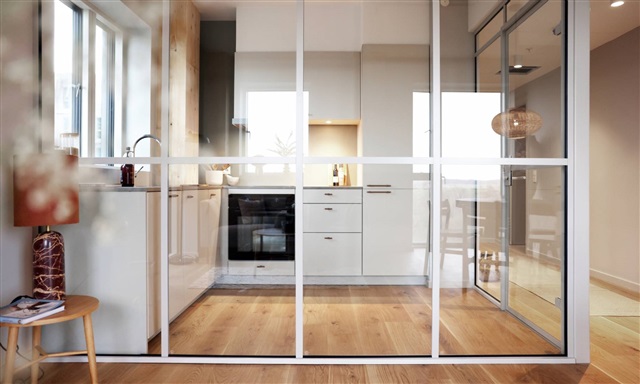 Indretningen byder på et lyst miljø med en gennemtænkt planløsning, og de varme egetræsparketgulve er kombineret med gulvvarme for komfort. Køkkenet, der stammer fra Rotpunkt, er klimavenligt og fuldt udstyret med hårde hvidevarer såsom induktionskogeplade, integreret ovn, køle/fryseskab og opvaskemaskine. Herfra er der adgang til en rummelig altan med en betagende udsigt over Amager Fælled.