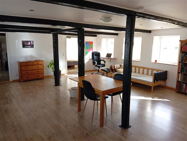 Idyllisk beliggende hus på landet for enden af privat vej med 2 hektar jordtilliggende udlejes ubegrænset til de rette lejere.Her får I al den plads og fred I kan ønske jer, der er plads til en stor familie i huset, og der er en stor lukket have og gårdsplads med rådyr og harer på jævnlige besøg omkring søen for enden af haven.