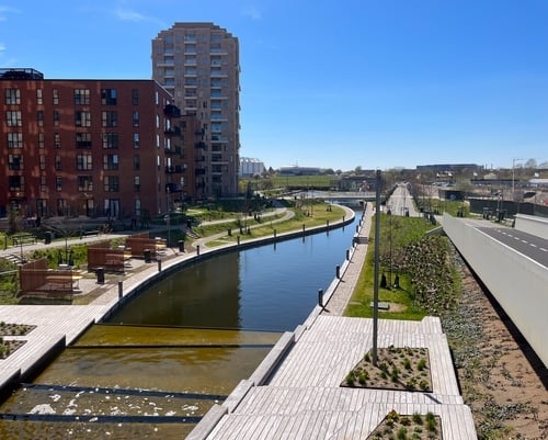 Frederiksbro er en ny bydel i Hillerød, der skaber trygge og indbydende rammer for beboere i alle aldersgrupper. Områdets placering giver samtidig nem adgang til både byens centrum og naturskønne områder, hvilket er ideelt for dem, der ønsker en kombination af byliv og natur.