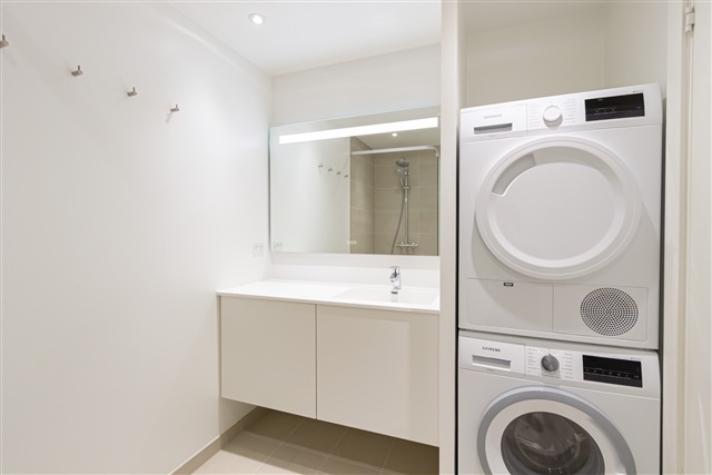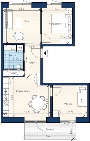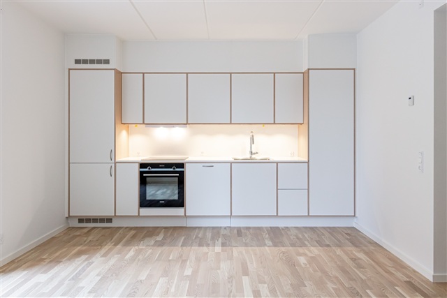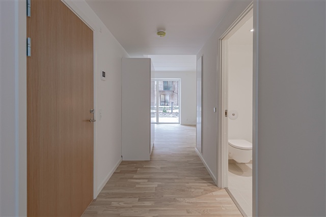 Denne lejlighed rummer tre værelser, hvor du finder et åbent køkken-alrum, en stue samt to rummelige værelser, begge udstyret med indbyggede skabe. Fra den store terrasse, der vender ud mod et charmerende fælles gårdmiljø, kan du tilbringe behagelige stunder udenfor. Køkkenet, der er designet af Invita, er lyst og komplet med alle nødvendige hårde hvidevarer, hvilket gør madlavningen nem og bekvem.Det stilfulde badeværelse er moderne og indeholder en vaskesøjle til egen brug samt en bruseniche med både overhead- og håndbruser. Gulvvarme findes i samtlige rum, og til boligen medfølger et depotrum, som er placeret i kælderen under ejendommen.