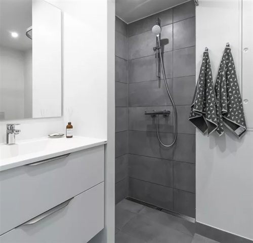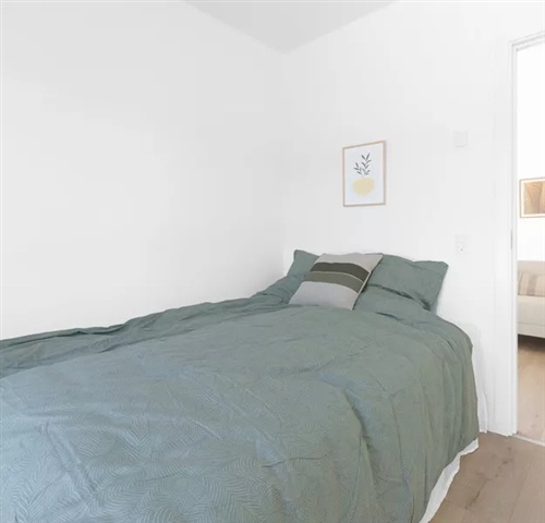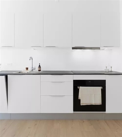 Denne lejlighed på to værelser er funktionelt indrettet med et kombineret køkken og opholdsområde, et separat soveværelse, et moderne badeværelse samt adgang til en privat altan eller terrasse. Desuden medfølger et eksklusivt opbevaringsrum til boligen.I det åbne rum, hvor køkken og stue flyder sammen, er der et lyst og enkelt køkken med moderne elementer i lyse farver, udstyret med alle nødvendige hårde hvidevarer. Soveværelset, der ligger i den ene ende af lejligheden, er ligeledes lyst og har et fastmonteret garderobeskab samt plads til en dobbeltseng. Badeværelset fremstår med et simpelt, men elegant design og indeholder bruseniche, toilet, håndvask samt et opbevaringsskab. Her findes også en vaskesøjle med både vaskemaskine og tørretumbler installeret. Fra stuen er der adgang til en privat altan eller terrasse, hvor det er muligt at opholde sig og nyde den friske udeluft.